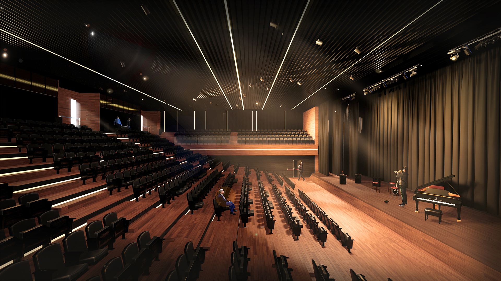 auditorio se resuelve con vigas postesadas ordenadas según la modulación
